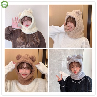 Nón trùm đầu hình tai gấu 4 màu bằng lông cừu giữ ấm mùa đông cho nữ