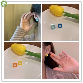 Bông tai xỏ lỗ dáng vuông hai tông màu kẹo ngọt phong cách retro dành cho nữ
