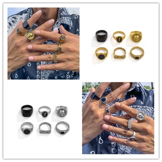 Bộ 6 Nhẫn Đính Pha Lê Họa Tiết Đầu Lâu / Trái Tim Đơn Giản Thời Trang Cho Nam Và Nữ