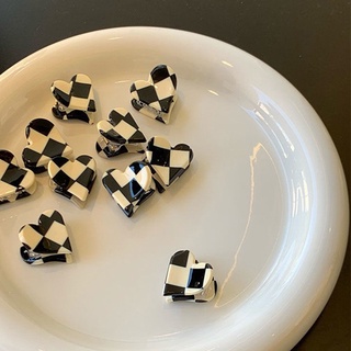 Kẹp tóc càng cua mini họa tiết caro trái tim cho nữ