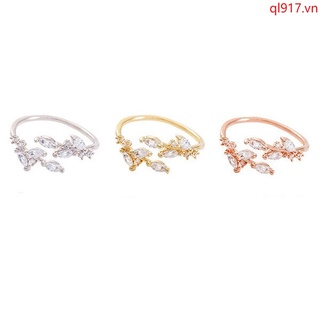 Nhẫn Hở Hình Lá Đính Đá Zircon Đơn Giản