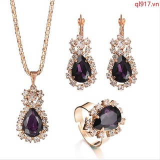 Bộ vòng cổ + nhẫn +bông tai đính đá thời trang cho nữ