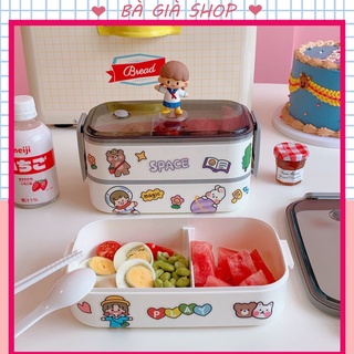 Hộp đựng cơm Sticker 2 tầng văn phòng có thể để lò vi sóng
