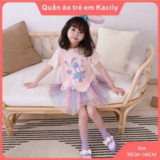 [Kacily]Quần áo họa tiết hoạt hình bé gái, áo thun bé gái váy trẻ em 1-9 tuổi