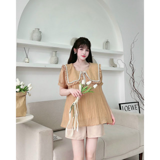 [Ảnh Thật] Áo bầu Sơ-mi Babydoll voan đũi Mềm Cổ Thủy Thủ