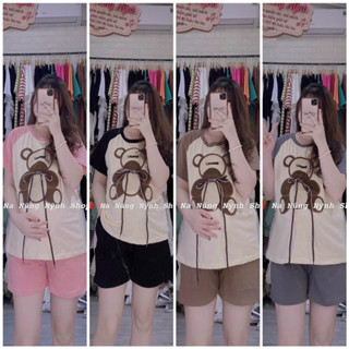 bộ đồ mặc bầu và sau sinh đùi cotton hoạ tiết gấu xưn- độc - điệu -đẹp