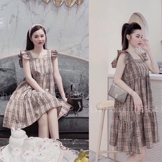 Váy V22 - Đầm Babydoll Đuôi Cá Tay Bèo Hai Lớp Cách Điệu Chất Đũi Gân