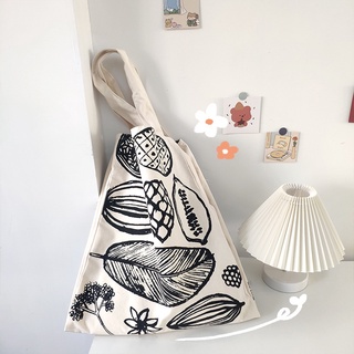 Túi canvas dung tích lớn ba ngăn - Túi tote in - Túi tote một bên lá hoang dã