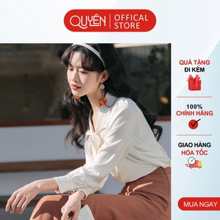Áo sơ mi công sở nữ kiểu hàn quốc cổ thắt nơ ngực bèo tay dài thanh lịch QUYÊN AA375