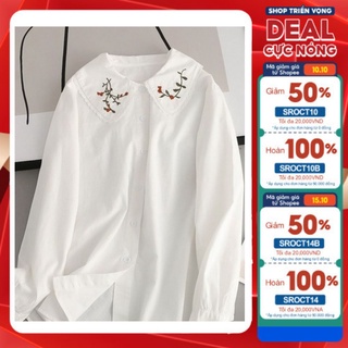 Áo sơ mi thêu hoa cổ xinh xắn SMT023, màu trắng tay dài công sở thanh lịch