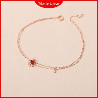 Lắc đeo chân bằng bạc 925 mặt hình trái tim hai lớp đính pha lê nhân tạo thời trang cho nữ