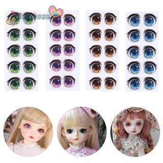 Bộ 10 cặp nhãn dán trang trí mắt kính 8mm/10mm/12mm/15mm họa tiết hoạt hình dễ thương