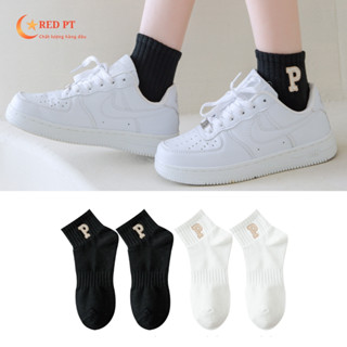 Tất cổ ngắn nữ dày dặn hình chữ P màu trắng đen RED PT