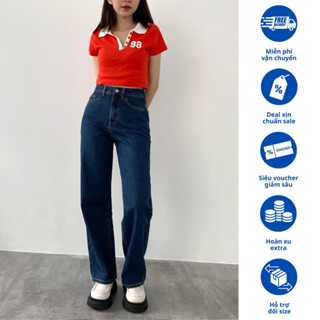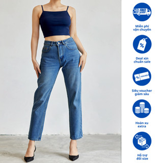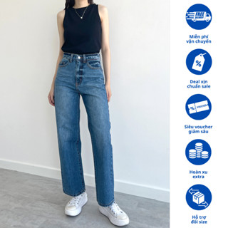 Quần Jeans Nữ Ống Đứng Lưng Cao Form Basic Màu Xanh Hot Trend Rede - Jeans VNXK (B-02)