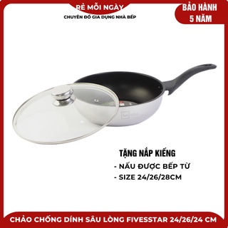 Chảo chống dính SÂU LÒNG FIVESTAR đáy từ 24 cm kèm nắp kiếng ( HÀNG CHÍNH HÃNG BẢO HÀNH .1 NĂM)