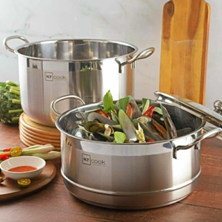 Bộ nồi xửng hấp inox 1 đáy HT COOK 28 CM INOX 430 Dùng được các loại bếp ( BẢO HÀNH 2 NĂM)