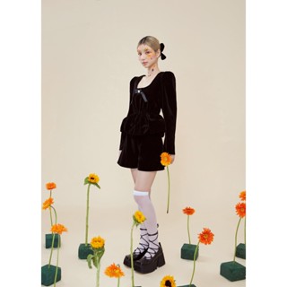 ĐẦM NƠ NGỌC đính đá lấp lánh chất nhung đen dáng bí xòe