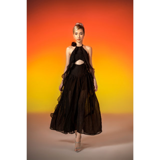 ĐẦM YÊU TINH LÁ ĐEN chất voan bồng, áo và váy có thể phối rời