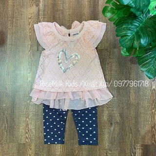 Bộ Cho Bé Gái Xuất Dư 3 Chi Tiết Hồng Nơ
