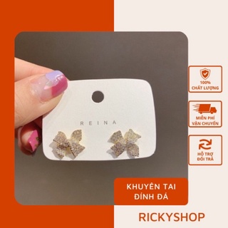 Khuyên tai bạc 925 đính đá kiểu dáng hình nơ lạ mắt độc đáo Phong cách Hàn Quốc