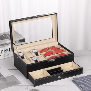 [Mới Về]Hộp đựng Kính - Đồng Hồ - Trang sức bọc da Pu 2 tầng có khoá chống trộm - Hộp đựng bọc da cao cấp