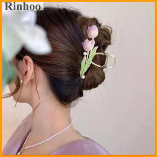 Kẹp tóc nữ RINHOO thiết kế hoa tulip tráng men đính ngọc trai thời trang