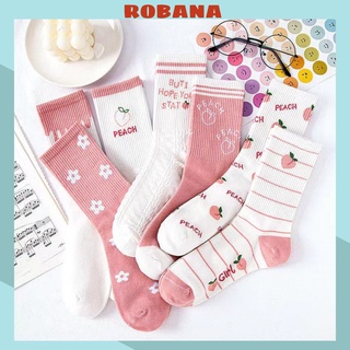 Combo 5 đôi vớ cổ cao ROBANA nhiều màu họa tiết dễ thương