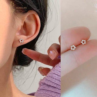 Roselife Khuyên Tai Tròn Nhỏ Màu Bạc Không Gây Dị Ứng Phong Cách Hàn Quốc Dễ Thương Dành Cho Nữ