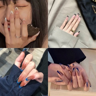[Hàng mới về] Bộ 24 móng tay giả họa tiết hình học kèm keo dán DIY tiện dụng cho nữ