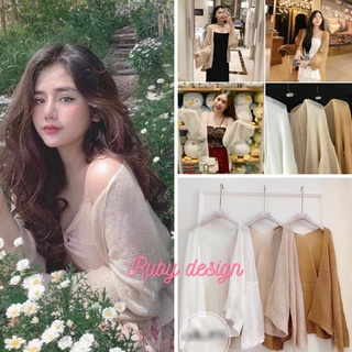 Áo khoác len , khoác cardigan mỏng croptop siêu xinh nhiều màu phong cách HQ - Ruby Design KH9129