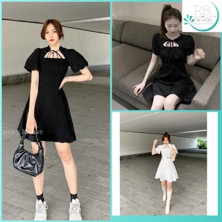 Váy đầm nữ dáng xòe dây ngựcRUBY HOUSE86 buộc dây, có 2 màu Đen, Trắng, khóa kéo sau