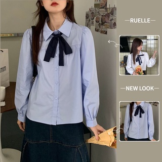 Áo sơ mi màu trơn dài tay thắt nơ xinh xắn thời trang Hàn Quốc cho nữ