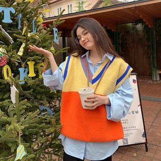 Áo Dệt Kim Không Tay Dáng Rộng Cổ Chữ V Phong Cách Thời Trang Hàn Quốc