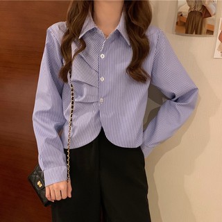 Áo sơ mi tay dài dáng rộng kẻ sọc phong cách thời trang Hàn Quốc dành cho nữ