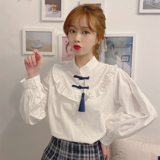 Áo sơ mi tay dài dáng rộng cổ bẻ phong cách Hàn Quốc duyên dáng cho nữ