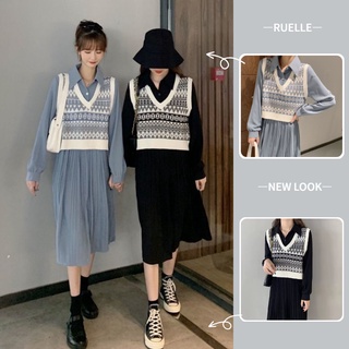 Set Áo Len Không Tay Cổ Chữ V + Chân Váy Thiết Kế Mới Ngọt Ngào Thời Trang Dành Cho Nữ
