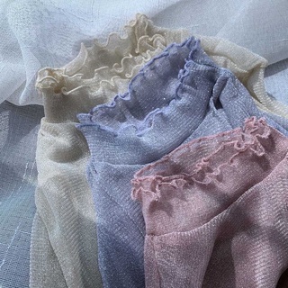 Áo Sơ Mi Dài Tay Hai Lớp Viền Ren Mềm Mại Nhẹ Nhàng Thanh Lịch Cho Nữ
