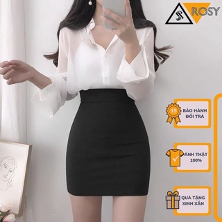 Chân váy công sở chữ A dáng ngắn xẻ tà thanh lịch lưng cao dáng ôm bút chì màu trắng đen (có quần trong )