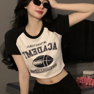 Áo croptop hình in phối tay viền , Áo Crt Ôm Body Nữ HELL Cổ Tròn Tay Ngắn, Áo Thun Croptop Kiểu chất thun gân dày sexy