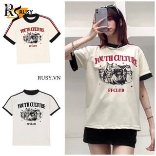 ÁO Thun Form Fit FFCLUB CAT CREW . Áo Baby Tee Phối Tay Sọc Chất Cotton Co Giãn Mềm Mát Rusy