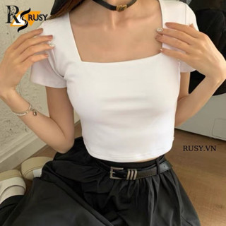 Áo thun croptop nữ cổ vuông nữ ngắn tay dáng ôm RUSY cao cấp, Croptop nữ cổ vuông tay ngắn chất thun co giãn mềm mịn