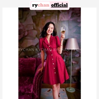 Đầm Dự Tiệc Dáng Xòe Cổ Vest Nút Trước Tay Ngắn Thanh Lịch, Đầm Công Sở Sang Trọng Màu Đỏ Hồng - DX9862