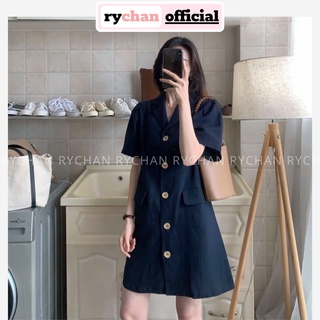 Đầm Váy Nữ Dáng Dài Đi Chơi Cổ Vest Nút Đen Màu Vàng Nghệ Cực Thoải Mái [ẢNH THẬT CUỐI] - DX9952