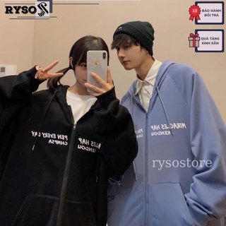Áo khoác hoodie Ryso chất nỉ bông dày dặn loại 1 nón 2 lớp in chữ mặc cặp nam nữ basic uniex from rộng
