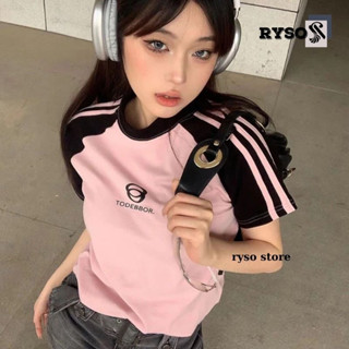 Áo croptop Ryso tay ngắn hình thêu phối viền chất thun gân phong cách năng động áo freesize dưới 55kg