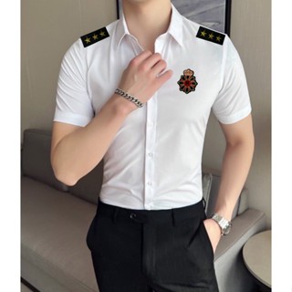 ÁO SƠ MI NAM TAY NGẮN CẦU VAI 3 SAO PHỐI LOGO ĐỎ NỔI BẬT HOT TREND - BIGSIZE 95KG