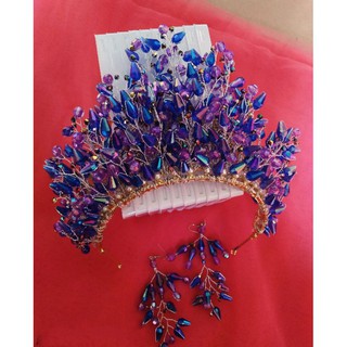 2 cài tóc kèm hoa tai đỏ cô dâu