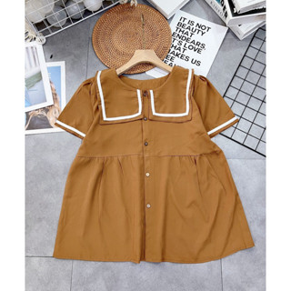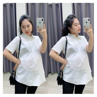 Áo bầu thời trang, cổ sơ mi, chất thô mềm, trẻ trung cho mẹ bầu dưới 68kg