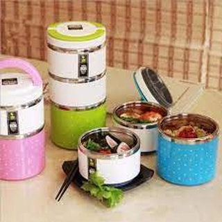 Cặp lồng cơm inox giữ nhiệt chấm bi 3 tầng