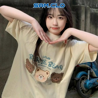Áo phông nữ tay lỡ thun form rộng SAM CLO freesize dáng Unisex mặc cặp, nhóm, lớp in BERNIE BEAR